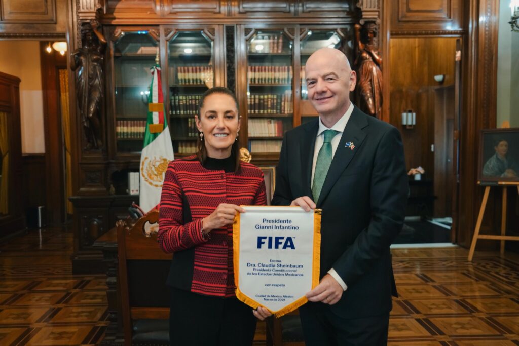 Como gesto simbólico, Infantino obsequió a la mandataria las tarjetas amarilla y roja oficiales que usarán los árbitros en el torneo. Infantino permanece en México desde varios días antes, habiendo visitado las tres sedes que albergarán encuentros: el Estadio Banorte en la Ciudad de México, el BBVA en Monterrey y el Akron en Guadalajara. La Copa del Mundo 2026, que México comparte como sede con Estados Unidos y Canadá, arrancará el 11 de junio con el juego inaugural en el Estadio Banorte.