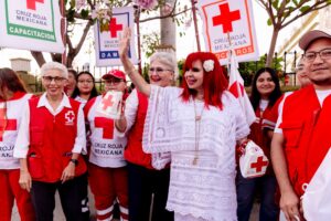 La gobernadora Layda Sansores San Román encabezó este lunes una jornada de boteo en apoyo a la Cruz Roja Mexicana en Campeche